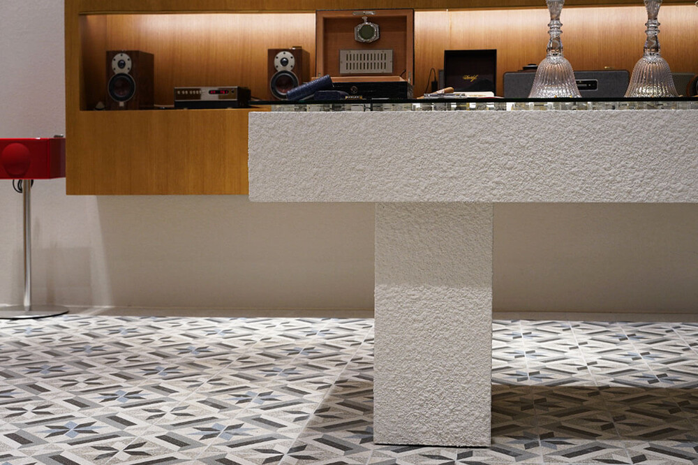 바닥 타일과 재료분리대의 라인 맞춤, 청음실의 차음을 위한 방음 시공 디테일